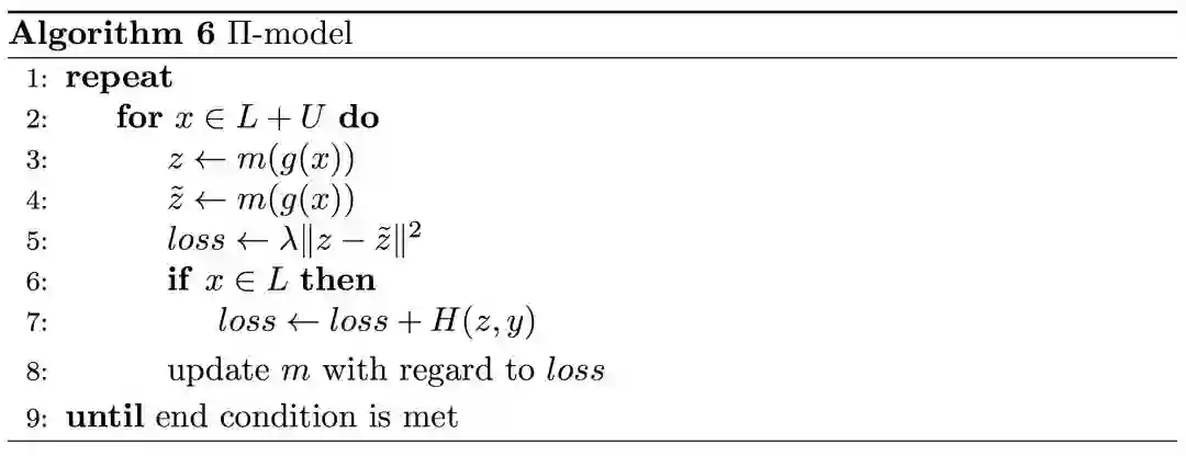但两者也有不同,和Multi-view training相比,Self-ensembling对模型的多样性看得更重。这类算法通常会在不同配置下训练单个模型,以保证预测结果更稳健。下面所列的算法都是近几年提出的,其中一些已经在计算机视觉上取得了state-of-the-art的成果。