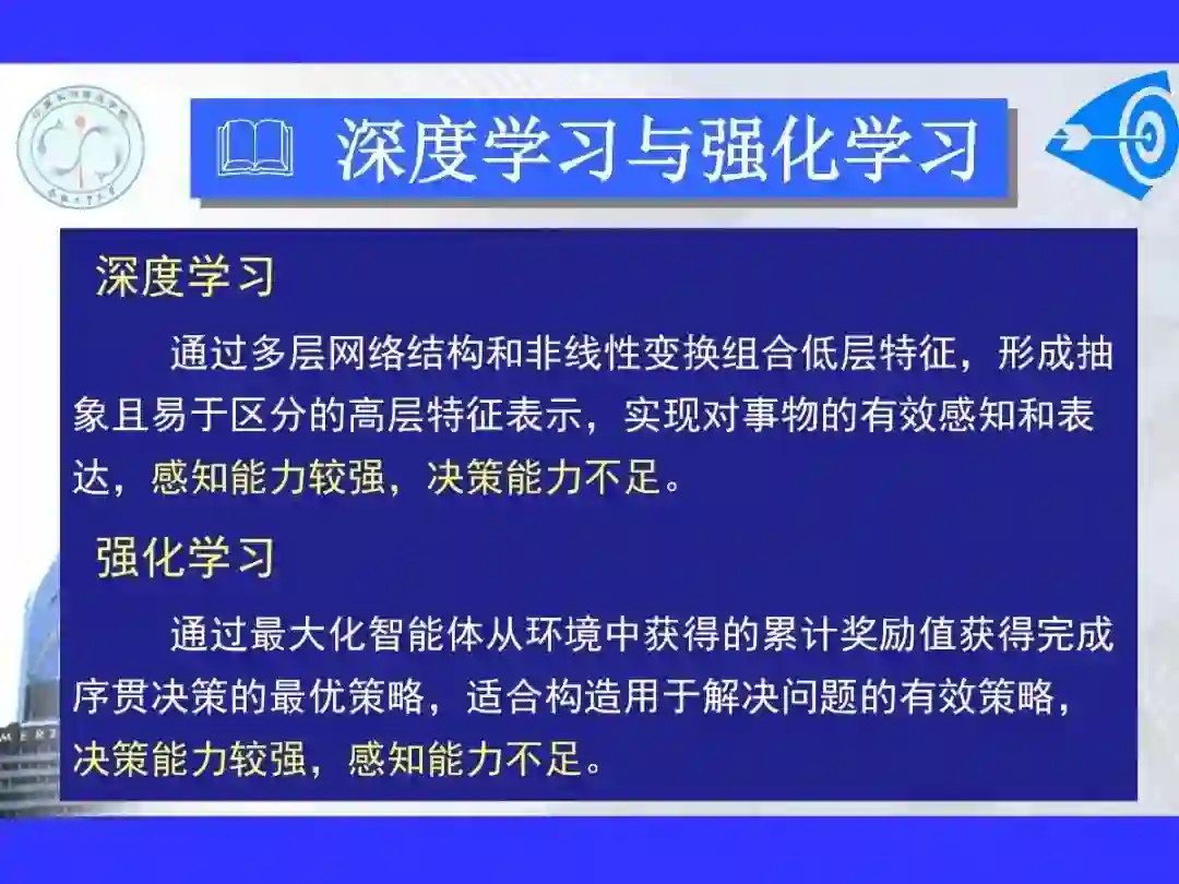 很多实际问题中需要处理的状态和动作数量都非常庞大,而且有些任务的状态和动作甚至是连续的,此时使用传统强化学习方法难以取得满意的学习效果。为打破传统强化学习算法的局限,人们使用深度学习方法来解决强化学习问题并建立相应的深度强化学习理论和方法,通过在强化学习计算框架中引入深度神经网络使得智能体能够感知更为复杂的环境状态并形成更复杂的策略,由此提高强化学习算法的计算能力和泛化能力。深度强化学习将强化学习和深度学习有机地结合在一起,使用强化学习方法定义问题和优化目标,使用深度学习方法解决状态表示、策略表示等问题,通过各取所长的方式协同解决复杂问题。