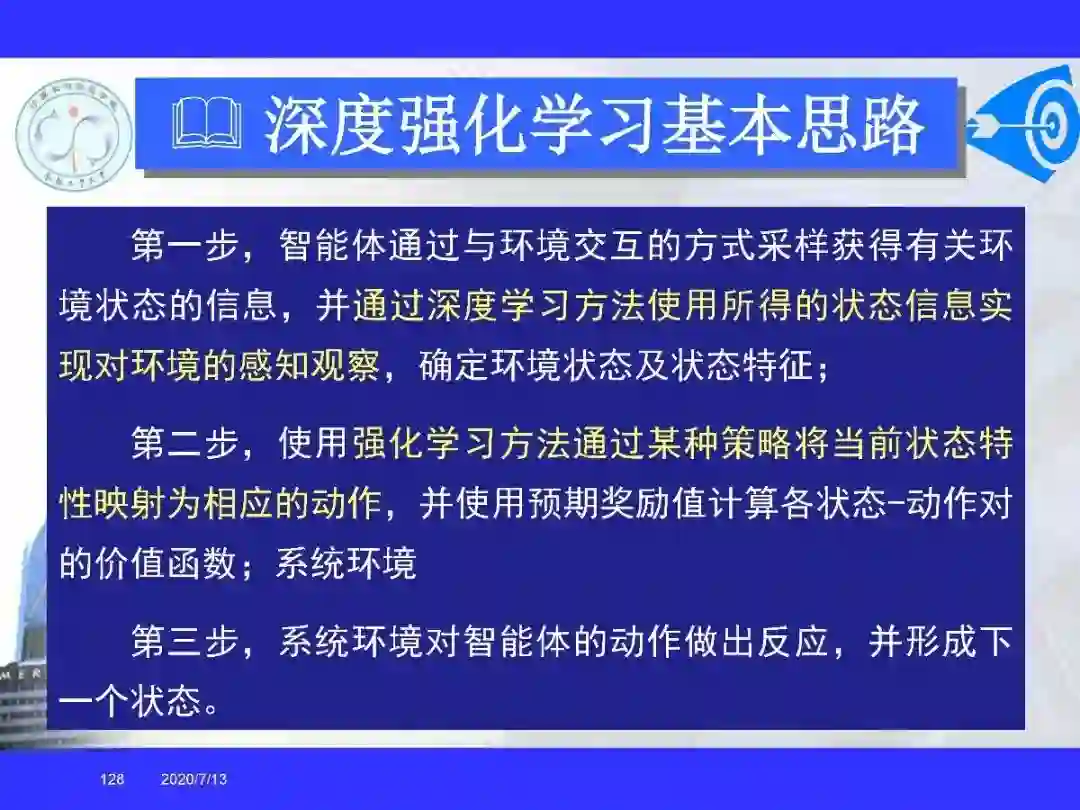 深度强化学习理论和方法为解决复杂系统的感知决策问题提供了新的思路。目前,深度强化学习已经能够解决一部分在以前看来不可能完成的任务,在游戏博弈、机器人控制、汽车智能驾驶、人机交互、过程优化控制等多个领域得到了成功的应用。很多学者认为深度强化学习将在不久的将来成为一种能够解决复杂问题的通用智能计算方式,并为人工智能领域带来革命性的变化。