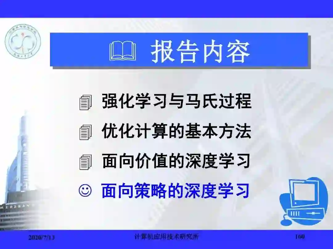 系统地介绍和讨论基于价值的深度强化学习方法和基于策略的深度强化学习方法;