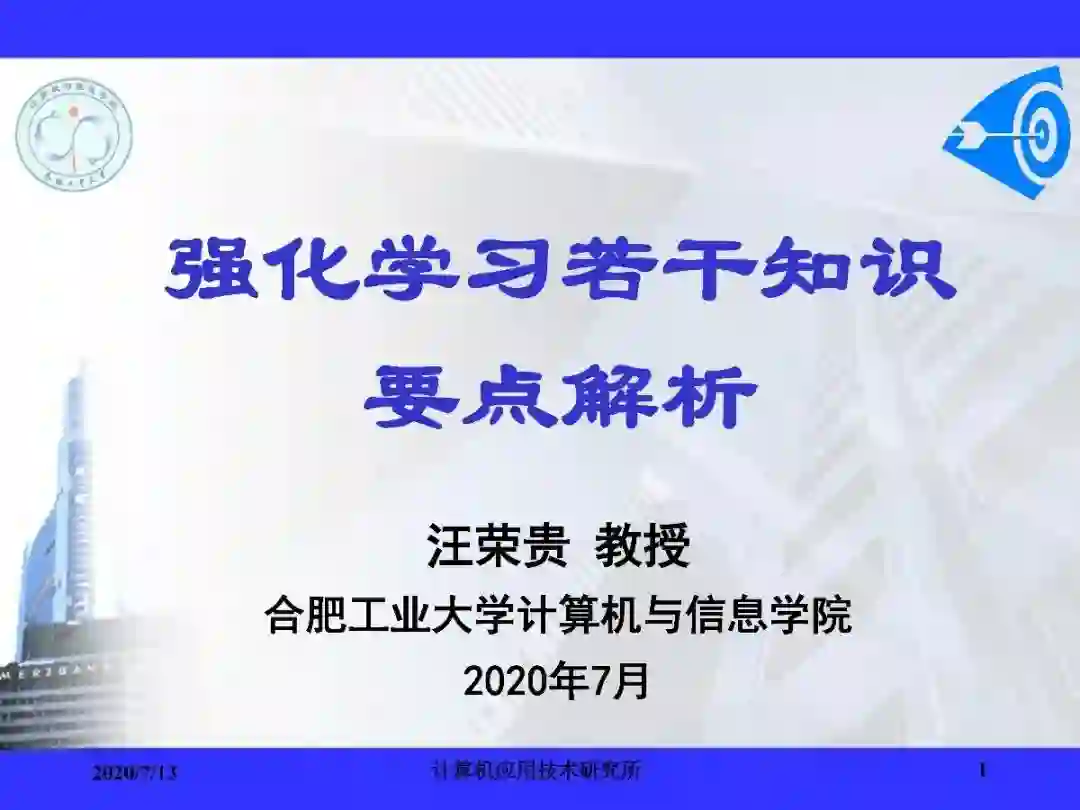 汪荣贵强化学习系列课程的讲义PPT共204页,先一睹为快吧~