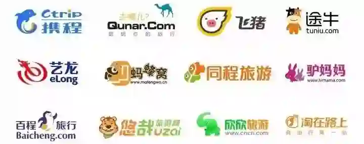 有些特定门类或行业的互联网公司,动物形象的比例高得离谱,完全可以组成行业内的动物园。譬如排名前十的旅游网站中,就有 8 个商标或名字包含动物,在前十之后,你还会看到一大堆动物,几乎可以说是「无动物不旅游」。