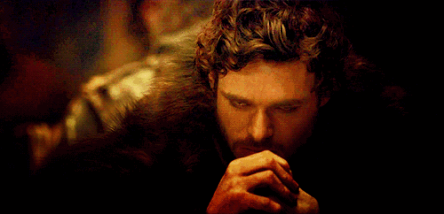 然后 Edd 的大儿子 Robb 领兵起义,揭开了五王之战的帷幕。我以为:“啊,原来子承父业,Robb 才是真主角!”结果到了第三季末尾,“哎哟我去!”咔嚓,狼少主带着媳妇、老娘,一起被抹了脖子。