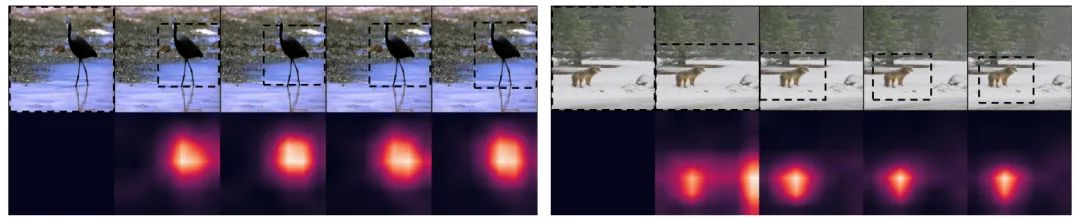 考虑到该定位框B并不完全准确,并且为了能够涵盖部分物体周围背景信息,作者仅将crop的中心限制在该框内。作者还在图3中展示了Semantic-aware Localization的效果(第二行)。对比原始的RandomCrop (第一行),加入定位信息能够很大程度上避免错误正样本对。此外,该定位框是从模型本身的特征中获取的,不需要引入额外的定位功能。