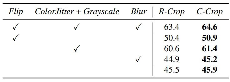 作者还展开了与其他变换(transformation)结合的消融实验。如表3所示,去掉其他所有transformation、单纯使用ContrastiveCrop就可以带来提升。而加上其他所有transformation则可以最大程度地发挥ContrastiveCrop的作用,带来最大的提升。