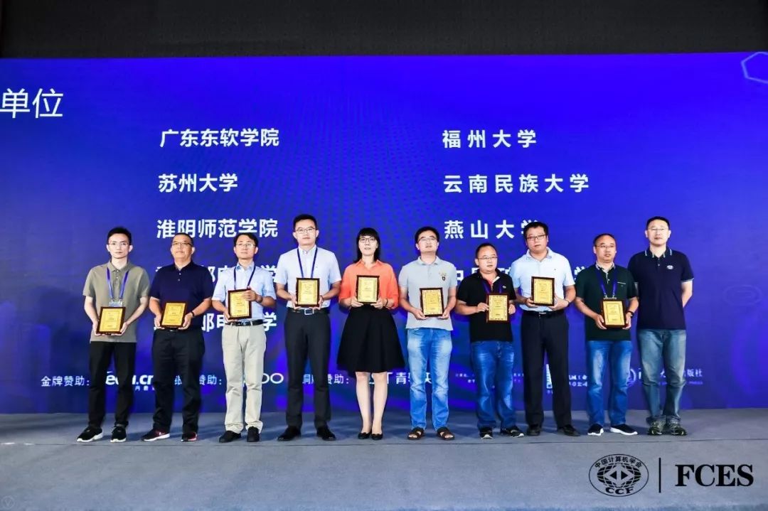 CCF在2019年7月19日CCF未来计算机教育峰会(FCES)上表彰了2018-2019年度CSP认证先进单位。CCF副秘书长、CSP认证技术委员会主席陈文光教授为27个获奖单位颁奖,CCF助理秘书长王新霞主持颁奖仪式,来自全国两百余所高校的360余位计算机教育负责人见证了颁奖仪式。