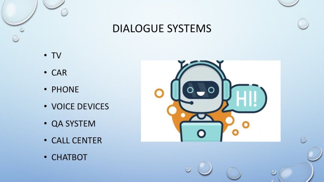 未来对话技术可以应用在很多场景中。首先是由任务驱动的对话机器人。这种应用现在非常普遍,比如各种各样的语音助手。