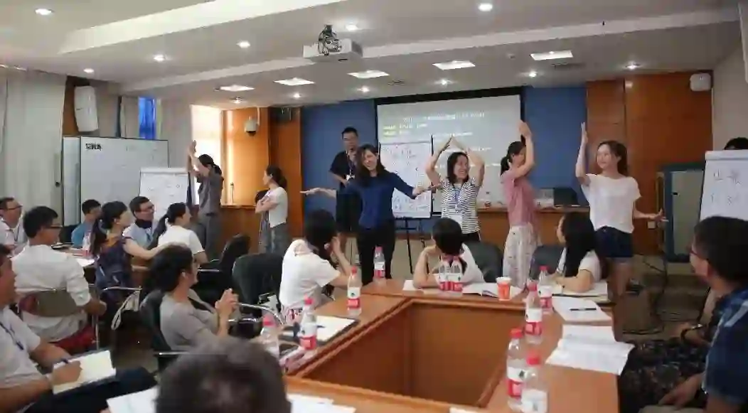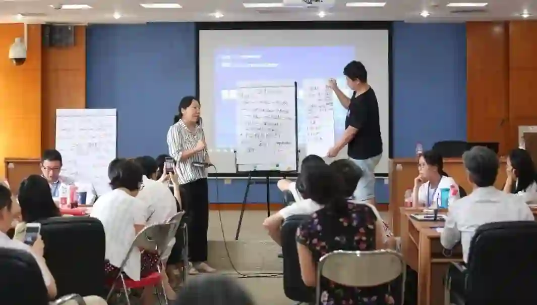 最后一天的培训,以人工智能教学创新设计工作坊的形式分组进行。每个小组均由一名指导老师引导学员对过去两天的学习内容进行了回顾总结,每位学员都提出自己的一个AI跨学科主题课程设计,组内展开讨论,并对其进行深度打磨,形成了系统的教学方案,最后各小组进行了成果汇报。