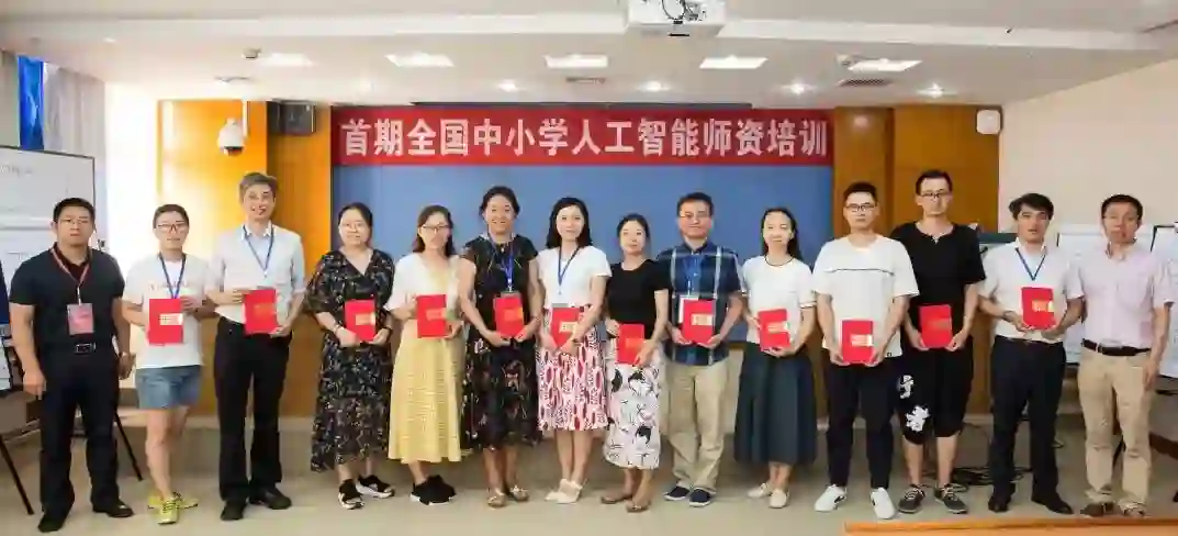 由中国人工智能学会联合中国科学院大学人工智能学院主办、中国人工智能学会中小学工作委员会承办的“首期全国中小学人工智能师资培训”于2019年7月21日在中国人民大学附属中学教学主楼结束了为期三天的集中培训,中国科学院大学人工智能学院副院长肖俊教授为学员们颁发了结业证书。