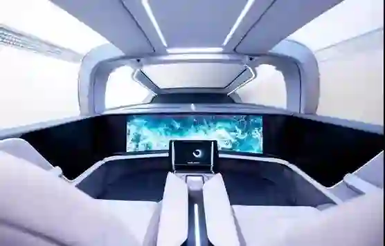 根据李彦宏的设想,未来理想状态下的自动驾驶概念车“汽车机器人”,没有方向盘、油门和刹车,取而代之的是巨大的曲面屏和智能控制台。