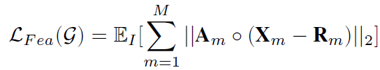 Xm 是特征网络的第 m 层中提取的特征图。Rm 是随机预定义的特征图,在训练期间是固定的。为了欺骗探测器,只有前景物体的区域需要扰动。作者使用注意权重 Am 来测量 Xm 中的对象,如果用 sn 表示区域提案 tn 的得分,对于原始图像中的每个像素,收集覆盖该像素的所有 region proposal,并计算这些 proposal 的总和 S 得分 sn,然后将 S 除以 proposal 数 N 就可以获得原始图像中的 attention 权重,最后,通过将原始 attention 权重映射到第 m 个特征层来获得 Am。对于对象内的像素,它们的权重将具有较大的值。○是两个矩阵之间的 Hadamard 积。通过使 Xm 与 Rm 一样接近,强制将 attention 特征映射作为随机排列,从而修改前景对象的特征图。其中 Rm 也可以被不同于 Xm 的其他特征映射替换。在实验中,作者选择 conv3-3 之后的 Relu 层和 VGG16 中 conv4-2 之后的 Relu 层来修改它们的特征图。为了计算 Am,作者根据得分使用了前 300 个 region proposal。