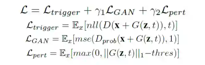 一个对抗性损失 LGAN 确保 x_t=x+G(z,t) 不能被判别器从原始图中识别出来。