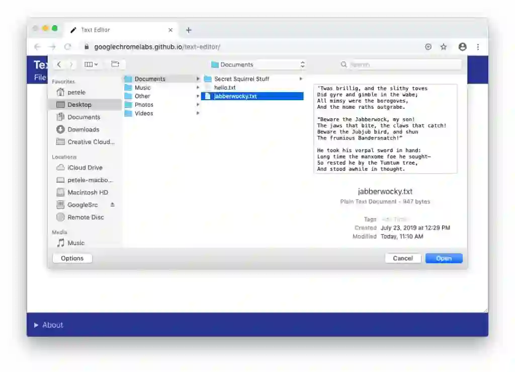 本地文件系统 API 是一个预告已久的新特性,这个新特性将进一步扩展网站功能:比如用户授予访问权限后,网站可以和本地的文件进行更改,开发人员因此可以构建基于网页的 IDE,开发出使用体验更加接近本地客户端的文本、图片以及视频编辑器等等。