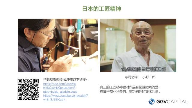 日本这种服务的精神是来自于哪里呢?网上很多人提到日本的工匠精神,比如说你看日本的寿司之神小野二郎,他有一句话我觉得讲得非常好,就是真正的工业精神,需要对待作品有超越时间的爱,有高于商业利益的,非利性的文化诉求。