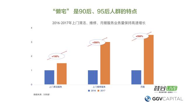 不仅是在中国有这样的情况,我们在美国做投资比较久,发现在美国很多大城市也会有类似情况。根据58的数据,不管是上门的清洁服务、上门的维修服务和月嫂等服务都越来越多,在美国也看到类似的情况。