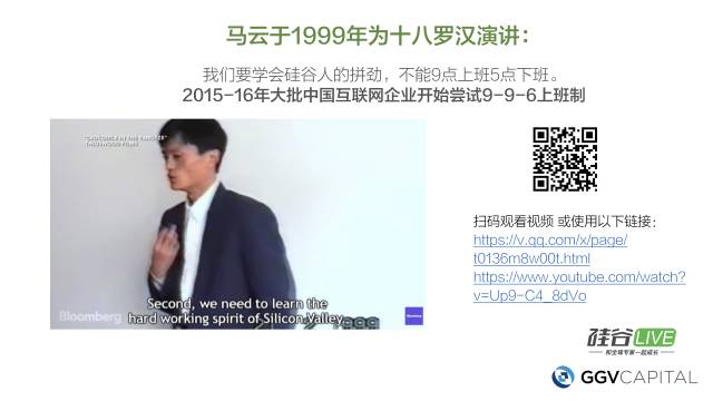 现在到了15年16年的时候,大批的中国互联网企业都开始996的上班制了,其实人们虽然有很多的争议,但还是愿意拼的,这种精神其实是让很多外国人包括硅谷公司都买都蛮敬畏的,为什么UBER、谷歌在中国会更拼更狠,更愿意去竞争,不怕苦,这种精神其实是非常可取的。