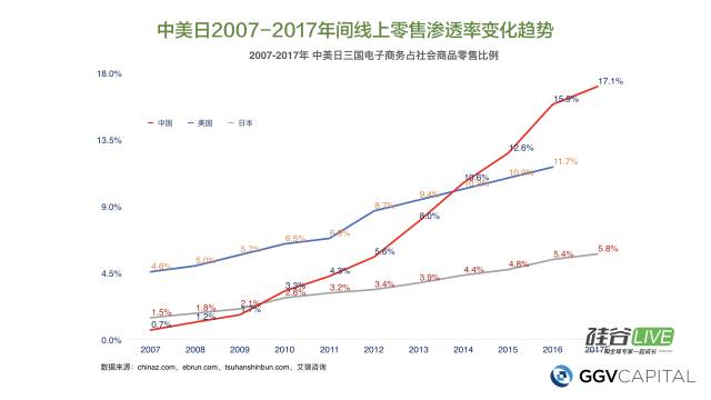 那为什么日本在电商上成长特别缓慢呢?待会儿我会做一个分析。