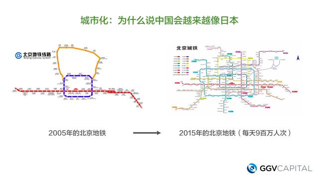 05年第一次来北京的时候,地下铁差不多就三条线而已, 15年已经是将近20条了,而且每天有900万人次在坐地铁,跟东京其实是非常类似的。