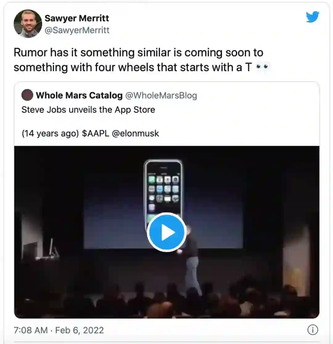 【消息称特斯拉计划开发自主App商店】知情人士透露,特斯拉可能正在开发类似苹果的应用程序商店,可让车主自己下载和安装应用程序,高仿苹果或Android的智能手机操作,打造自主品牌的软硬件生态链。(财联社)