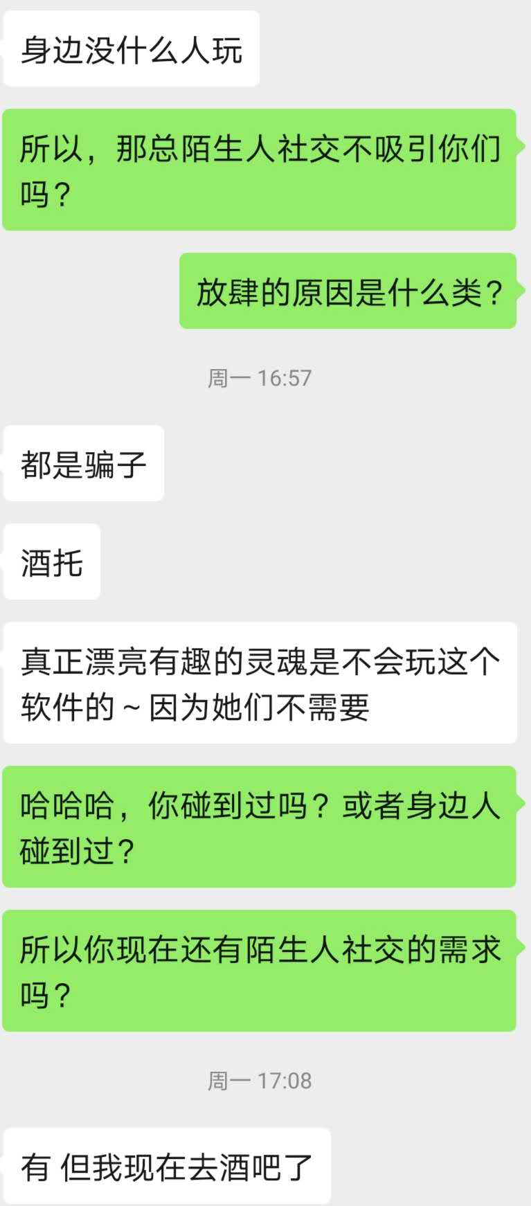 因为他们其实很清楚所谓的“社交平台”葫芦里卖的什么药,在他们看来越是正儿八经的使用社交软件,反而是抱着一个最“不纯粹”的社交态度。
