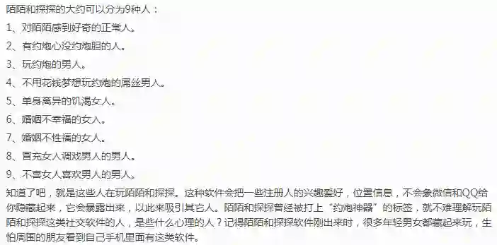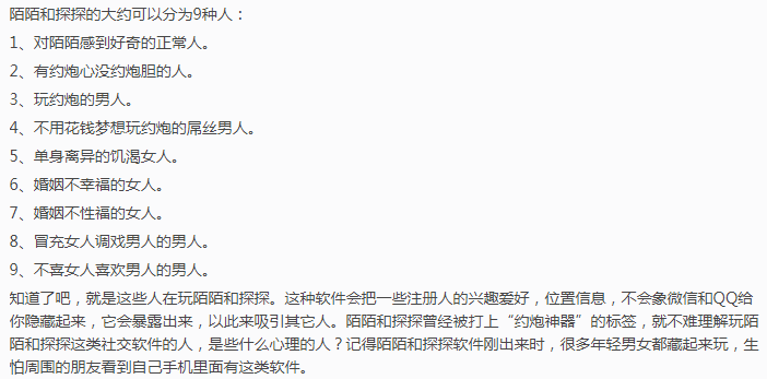 “早两年吧,探探和陌陌都用过,目的?就很纯粹啊,私密社交嘛,不就男女那些事。会有真正抱着交个朋友心态去用那些软件的人?”
