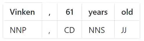 词性标注(POS tagging)是一种标注单词在文本中所属成分的任务。词性表示单词所属的类别,相同的类别一般有相似的语法属性。一般英语的词性标注主要有名词、动词、形容词、副词、代词、介词和连词等。