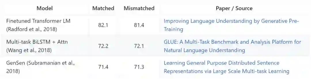 当前最佳结果可以在公开 GLUE 排行榜上查看:https://gluebenchmark.com/leaderboard。
