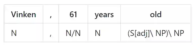 组合范畴语法(CCG; Steedman, 2000)是一种高度词汇化的形式主义。Clark 和 Curran 2007 年提出的标准解析模型使用了超过 400 个词汇语类(或超级标记(supertag)),典型的解析器通常只包含大约 50 个词性标注。