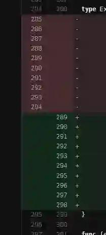 由于文字较多,若像短文本那样将全部内容都展示出来,则不利于用户看出变化。这时就可先按“行”梳理长文本内容,编辑后只给用户展示出变动行的内容,如下图所示,可以很清晰地看出用户删除了第285-294行,新增了289-298行。