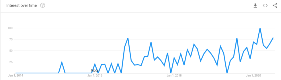 谷歌趋势图显示了对低代码术语的搜索兴趣