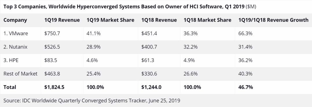 IDC表示,在这些类别中,超融合系统是最主要的增长动力和收入来源。在第一季度,总收入超过18亿美元,与去年同期相比,增长率达到了惊人的46.7%。