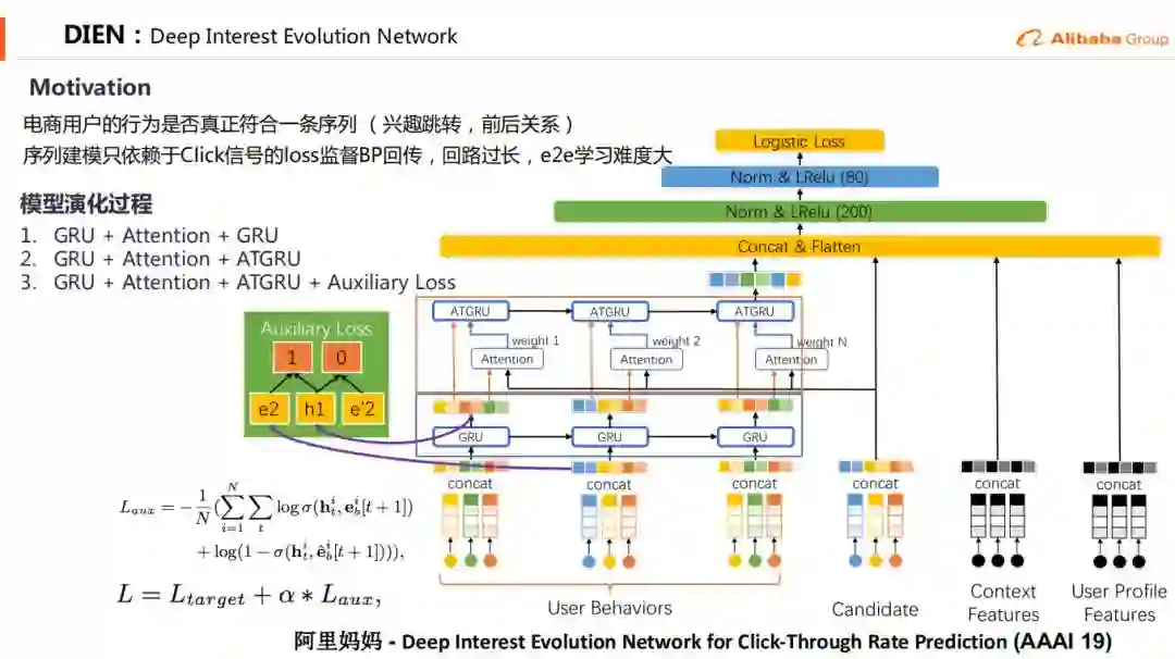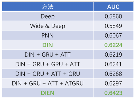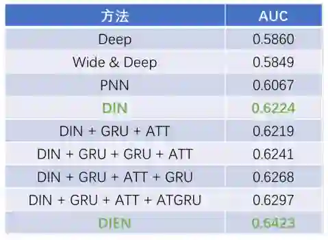 当我们知道DIN和DIEN的时候,这两篇paper都引出来了,但是为什么我们没有直接上DIEN而是用了DIN呢,主要原因就在于DIEN在用户表征里有两层GRU的结构,用GRU跑起来是一个串行的结构,它不能并行。我们预估起来它这个耗时是比较厉害的,存在一定的上线的工程风险,所以我们在这边就是先上的DIN再上的DIEN。