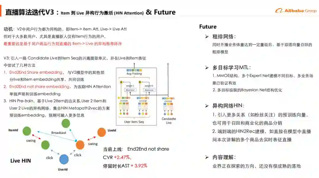 动机:V2中⽤户行为都为同构的, 即item-> Item Att, Live-> Live Att,但对于⼤多数⽤户, 尤其是直播新⼈仅有Item⾏为的⽤户,最重要的是基于⽤户商品行为到直播的 Item-> Live 的异构推荐排序