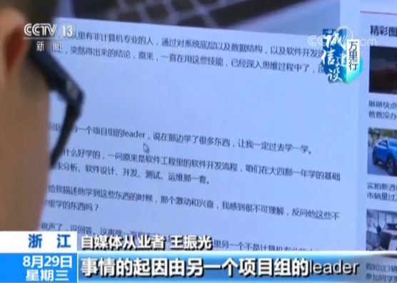 自媒体从业者 王振光:左边这是我的,右边这个是被洗稿的。比如说我的文章里有这么一句话:“事情的起因,另一个项目的leader……”,他会变成“工作的缘由,另一个项目组的leader……”,他会变成这么一个结构。但是你从头看的话,它是一篇文章,他会把整篇的文章的经验和观点都抄袭下来,就是洗下来。就是说他会把整篇文章的词汇,都会换成它的近义词。