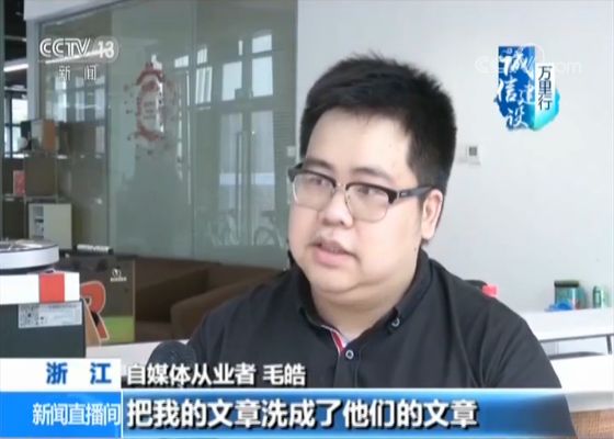 自媒体从业者 毛皓:之前我花了三到四天的时间,写出了一篇深度稿件,很快就在朋友圈,得到了大量转发,但是还没有等到我开心多久,我突然发现冒出了二三十个帐号,把我的文章写成了他们的文章,甚至还有一些人申请了原创标志,而且他们的账号非常快,(阅读量)也达到了十万以上。最终我的这篇文章,微信端获得了120万的阅读。