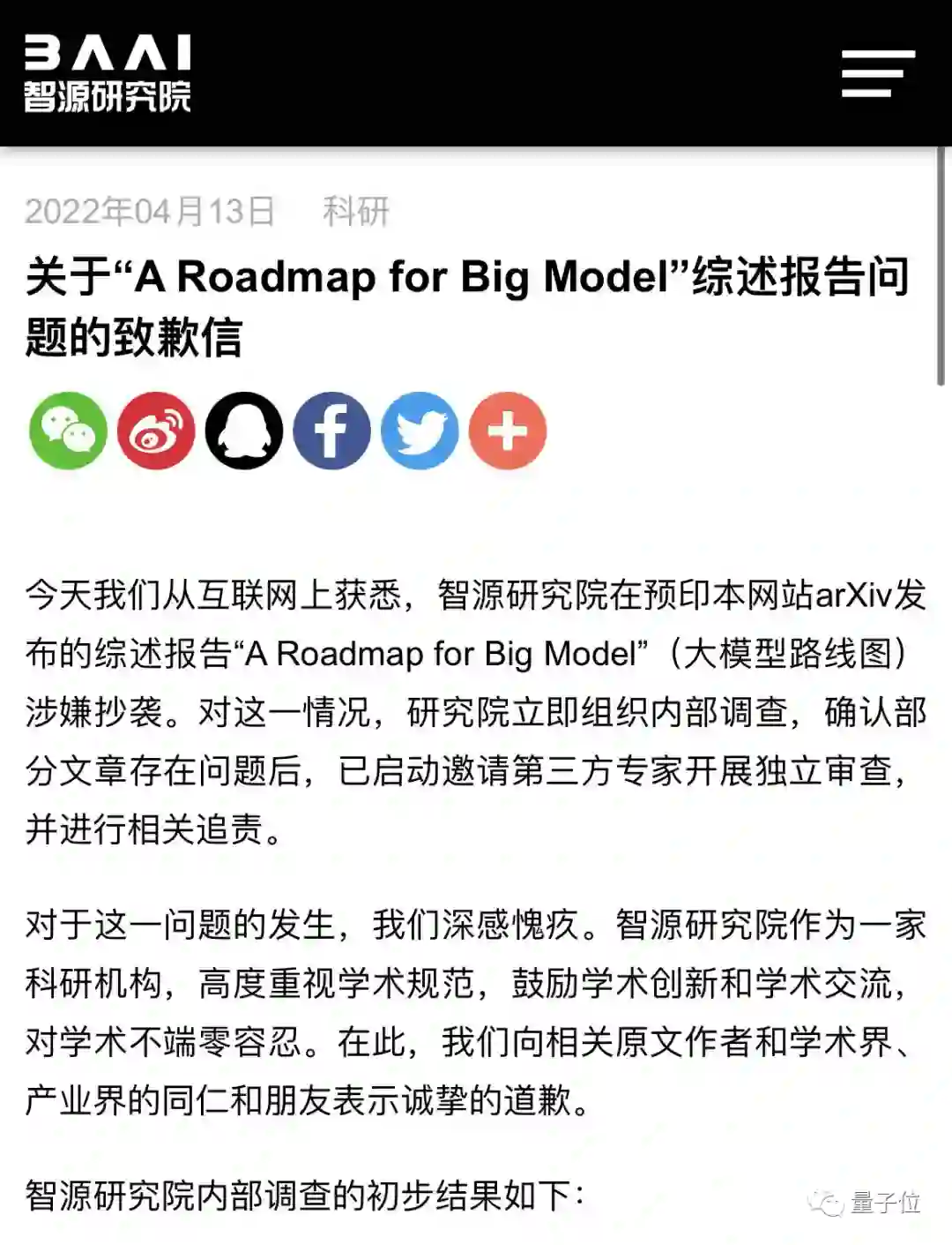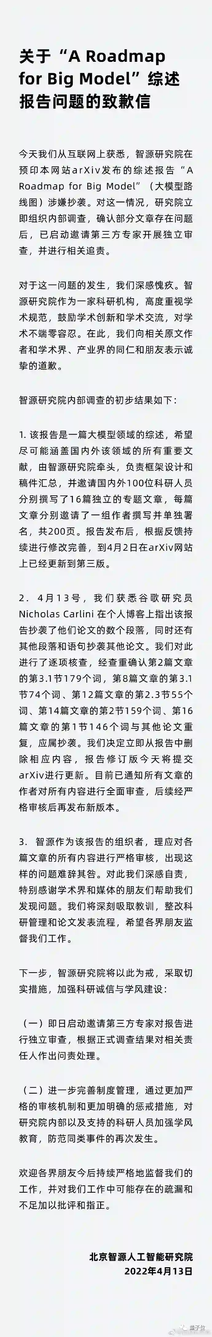 按初步调查结果,智源决定立即从文章中删除已确认的抄袭内容,并通知所有作者对所有内容进行全面审查。