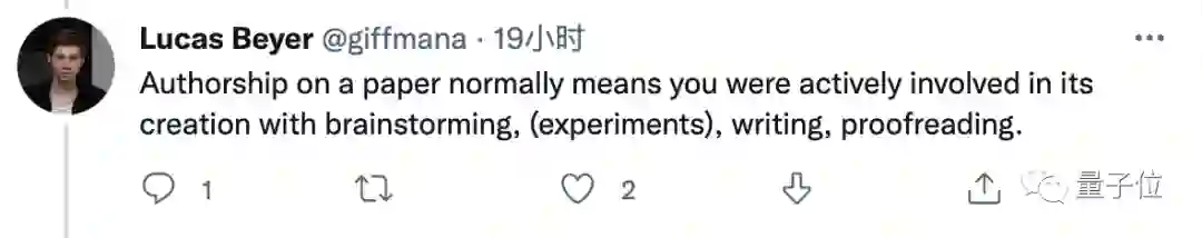 不过,ViT作者之一Lucas Beyer认为,在论文中署名就意味着要参与从创意脑暴、试验、撰写、校对的过程,承担相应责任。