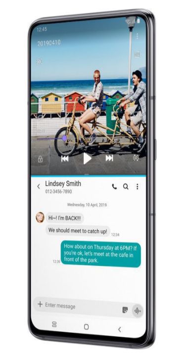 搭载3700mAh的电池、支持25W快充,支持屏下指纹解锁,不支持无线充电。该机标配8GBRAM+128GB ROM,预装安卓9Pie(One UI)。