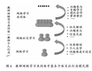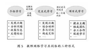 如图5所示,教师网络学习共同体的三种形式相互依存、相互促进,既同时存在于同一的学习共同体中,又针对不同种类的教师网络学习共同体,各有不同特色。