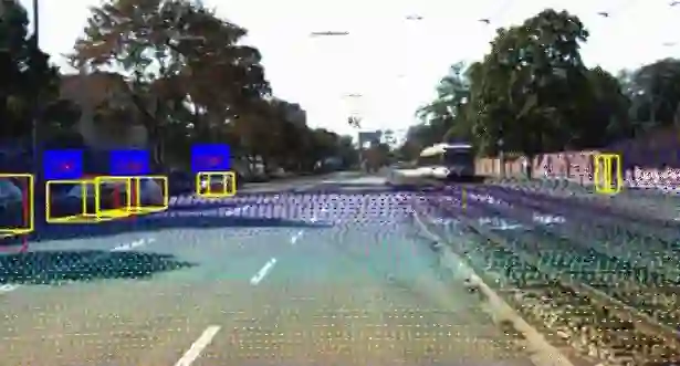 3)数据采集和算法处理单元:为系统的核心算法功能模块,主要功能包括激光雷达和摄像头坐标位置标定,并分别采集获取激光雷达点云信息和摄像头视频图像信息,然后通过融合处理对可探测范围内的移动障碍物(卡车、小汽车等机动车、非机动车、行人等)进行检测、识别处理后计算出关联目标的方位、距离、速度及运动方向等信息,并可根据实际路况场景做进一步警告威胁判断。