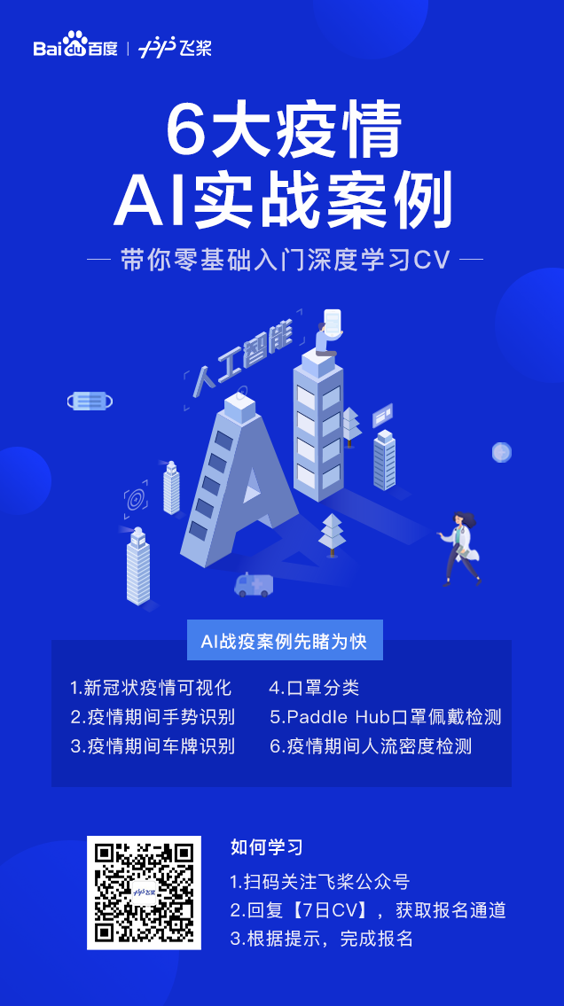 会者不难、难者不会,为了降低深度学习技术门槛、培养最优秀的AI人才,百度飞桨资深算法工程师、联合百度认证布道师团队,反复打磨推出了第五期百度深度学习7日打卡营,通过6个新冠疫情最新实战案例、1场人流密度实战比赛,一站式带大家零基础玩转深度学习CV。