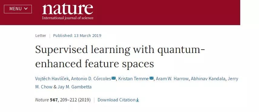 最近,在Nature上发表的一篇论文中,Havlíček等人从二者之间的联系入手,展示了现代量子计算机是如何从数据中进行学习的。论文表明,传统计算机可以将数据映射到只存在量子态的空间中,实现监督式学习。