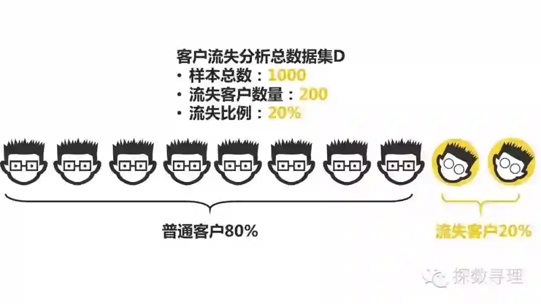 例如在上述1000个样本中,其中有200名客户被标记为流失,800名客户被标记为普通客户。