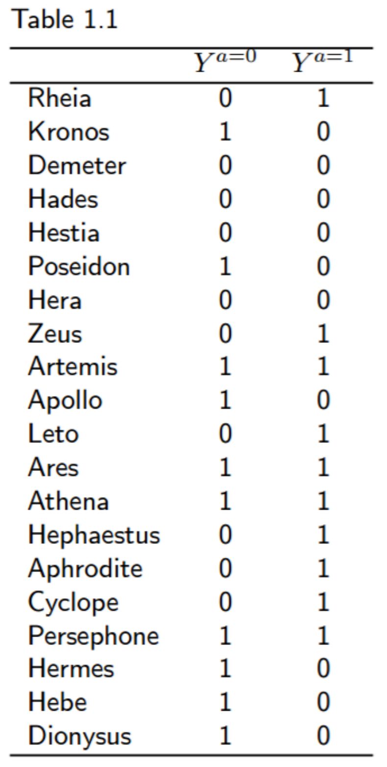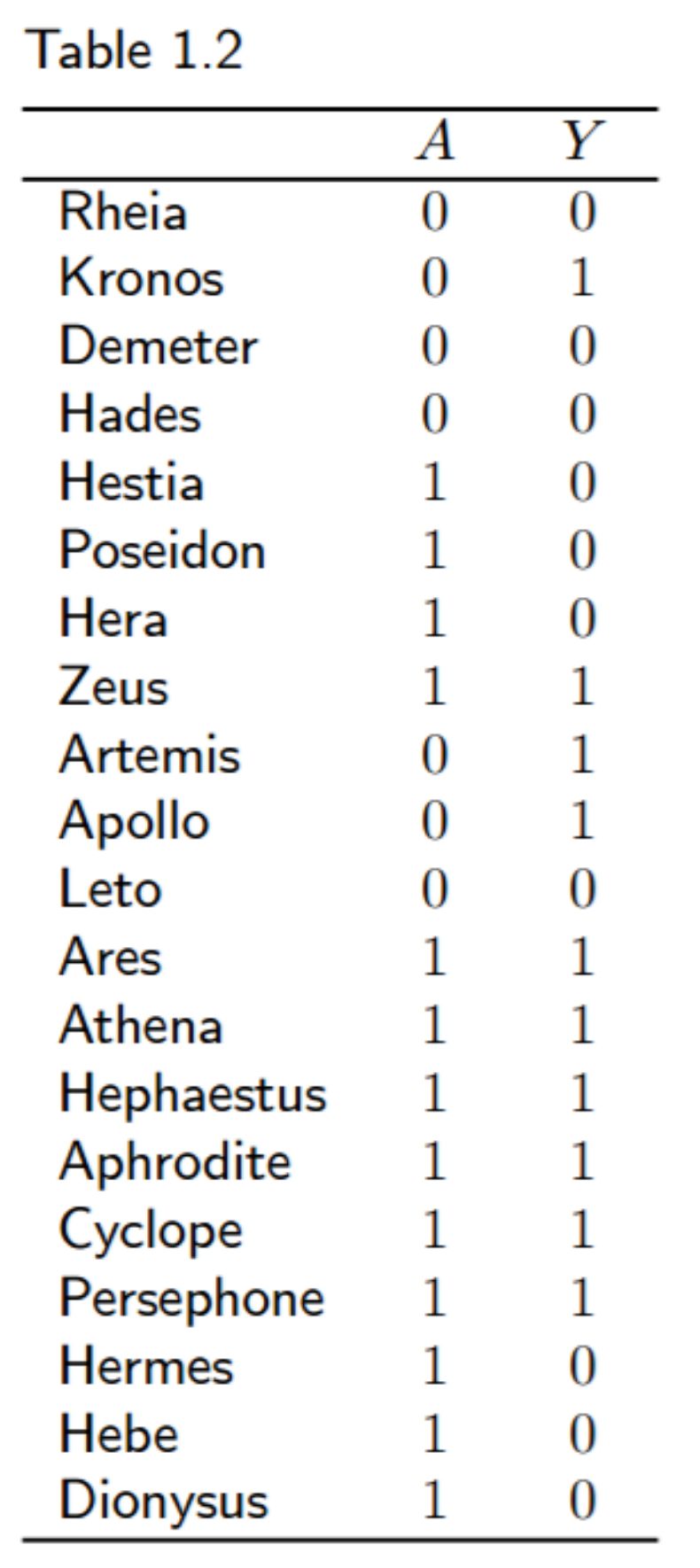 其次,在这个案例中是无法获得一个个体的全部自变量样本的,宙斯或赫拉要么接受要么不接受心脏移植,不可能两者皆有,因为因变量是死亡或者存活。这引出了一个非常重要的概念,即因果关系和相关关系之间的区别。