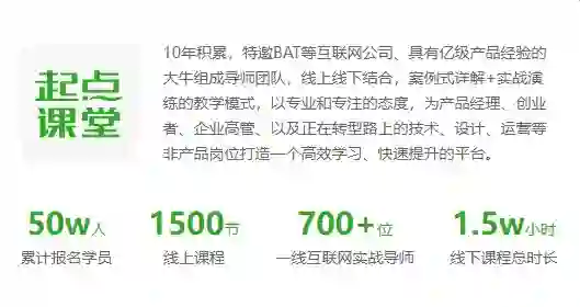 1. 起点课堂(原:起点学院)是人人都是产品经理旗下教育品牌,多企业信赖,大平台可放心选、放心学。