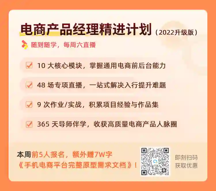 起点课堂联合2位长期深耕电商领域的产品老司机,帮助0-3岁电商产品经理,系统构建大厂规范的电商产品能力体系,成为有思考、有策略的实干型电商产品经理!