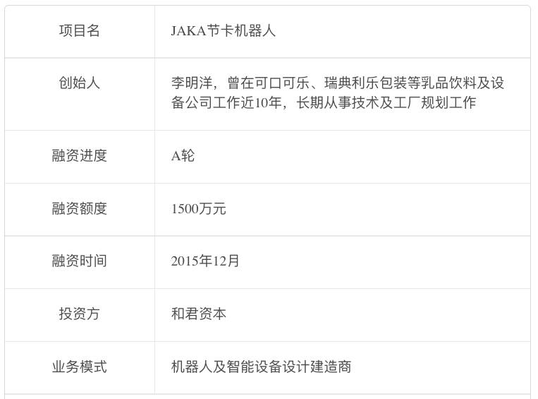 目前,“节卡机器人”已搭建智能装备、工厂数字化、机器人三个业务板块,拥有蒙牛、旺旺、光明、新乡化纤等16家客户,今年预计营收1.2亿元。公司计划在今年底或明年初完成B轮融资。