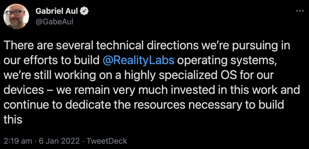 不过,Meta显然很想为自己的设备从头开始创建一个操作系统,而这个项目在内部被称为XROS。