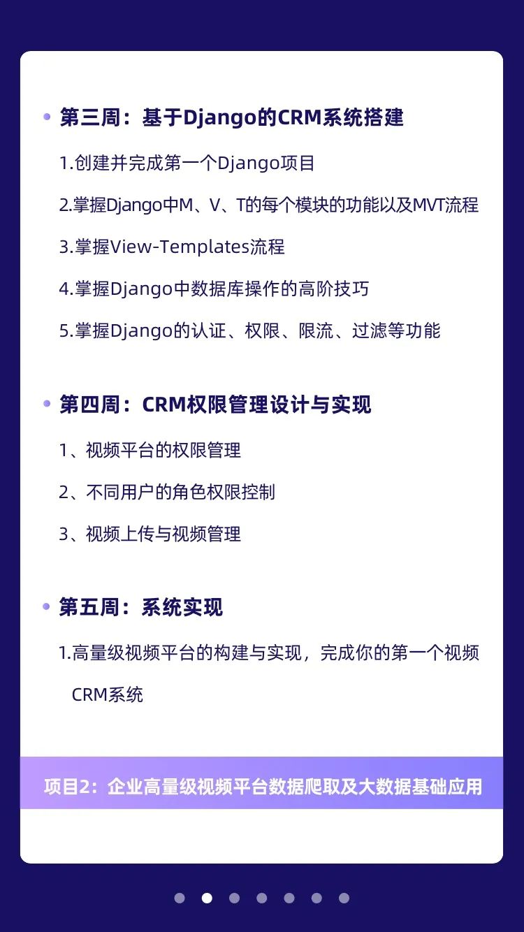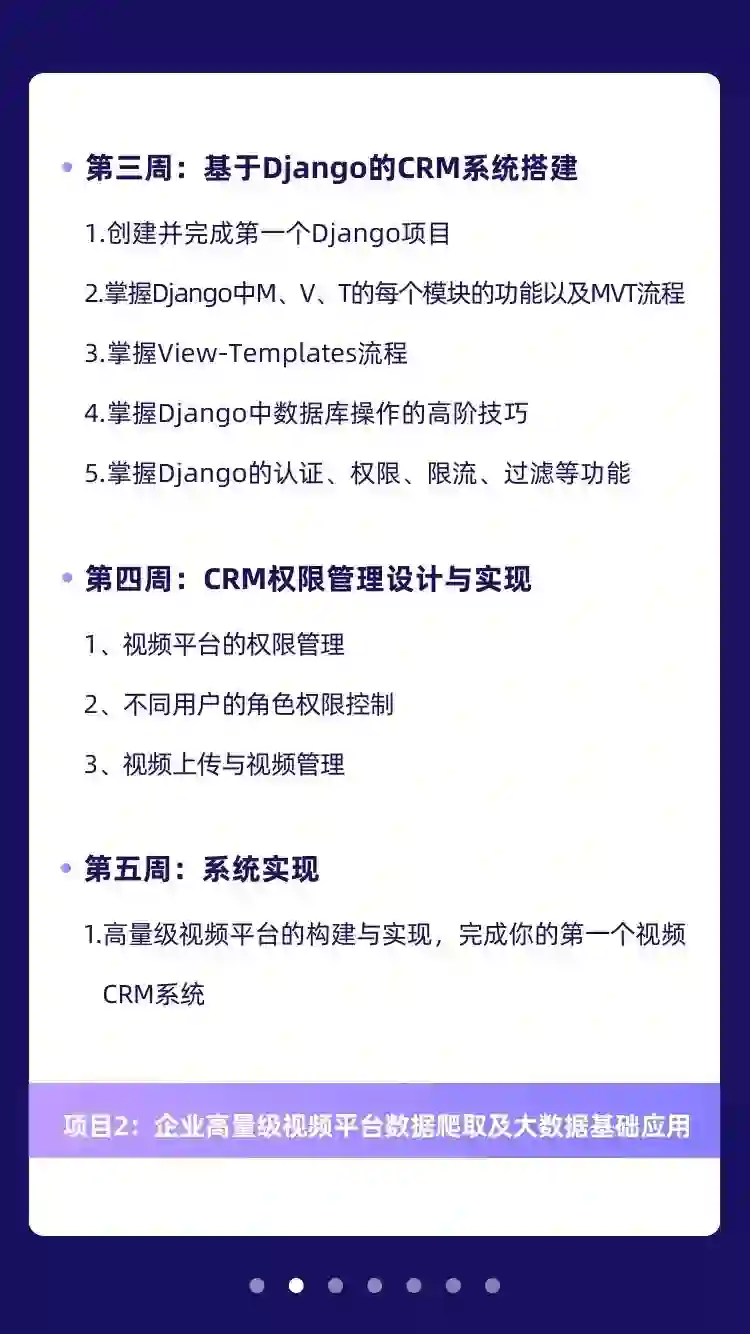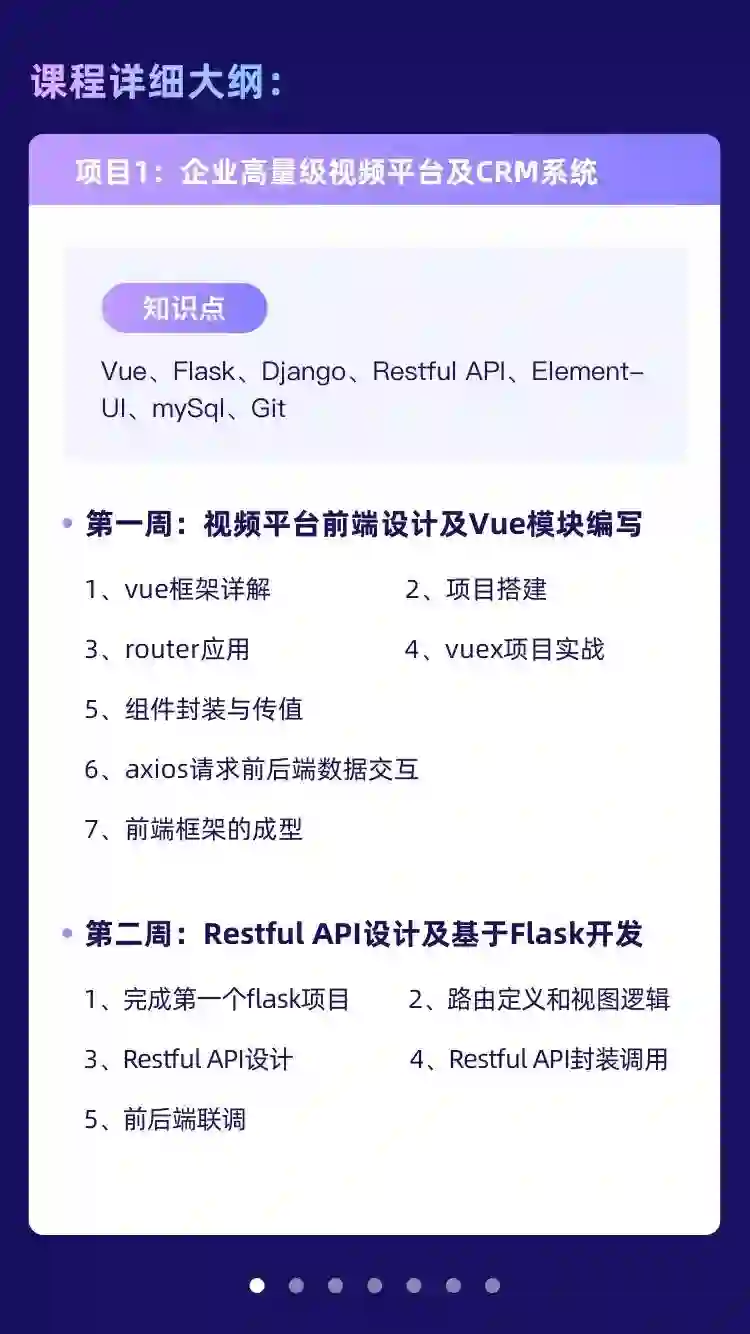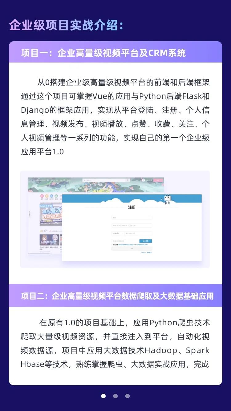 在Python全栈一期课程的基础上进行课程升级,采用一站式企业级项目驱动,以行业内最火爆的高度聚集的文化社区和视频平台企业级项目为实战课程。