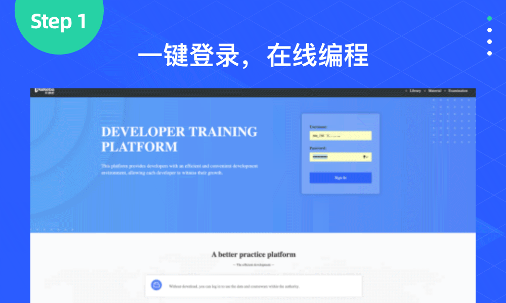 自研线上教学环境,免除下载+代码驱动+在线编辑,随学随用。